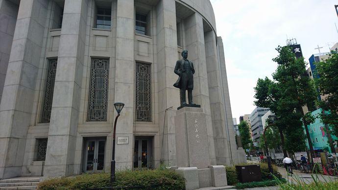 五代友厚像は、大阪証券取引所前と大阪商工会議所、そして光世証券前にもある。今回、出張の隙間時間で大阪証券取引所前の像を訪ねることができた。