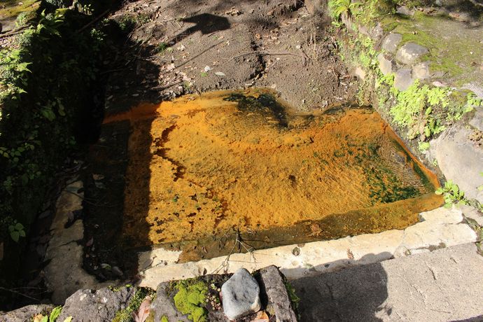 土砂が入り込み、現在は入浴ができる状態ではありません。わずかに湧いているお湯に触れてみると。。