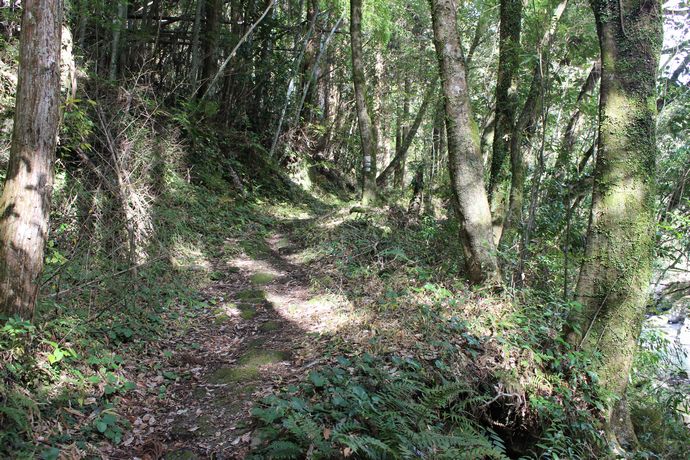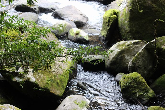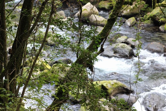 では、ここから河沿いを滝に向かって進んでいきます。個人的にはよく切り開かれた道だと思いますが、人によっては杖を持参した方が安心です。