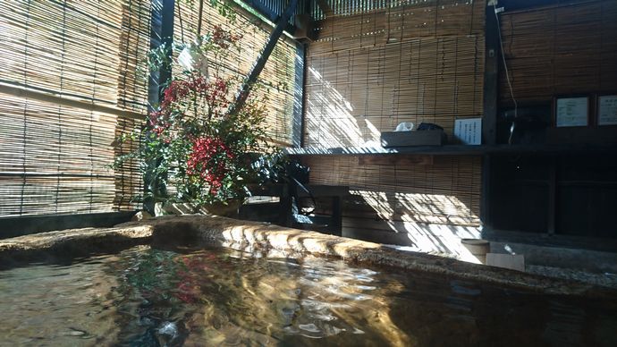 昔は河沿いに露天があったみたいですが、今は使われていません。ただ、この温泉も半露天のような感じで外の空気や川の音を感じられる空間です。