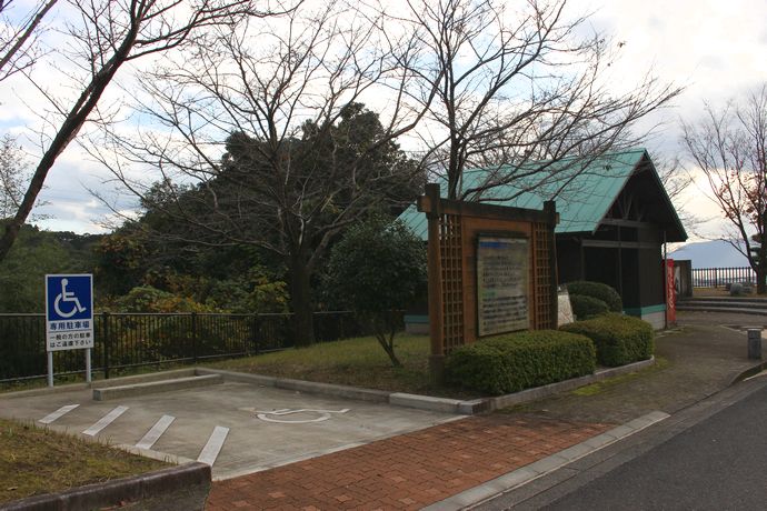 滝の案内があるふれあいパークは、車いす対応のお手洗いやオストメイト用の流しもあり、トイレ休憩によく利用されている様子。※郷田滝の案内があります。