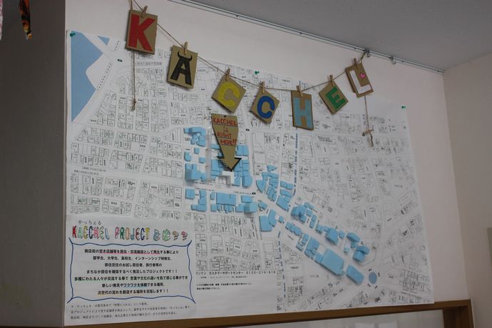 4月に開設されるシェアハウス「KACCHEL(かっちぇる)」の案内MAP。KACCHELは仲間に入れる。という方言からとったらしいです。