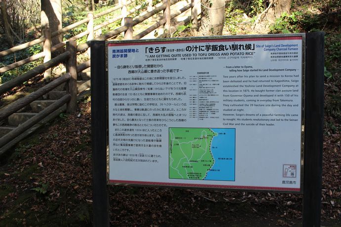 明治日本の産業革命遺産として登録された寺山の炭窯跡に行く途中、南洲翁(西郷隆盛)が開墾したという土地跡に辿りつきました。吉野あたりにあることは知っていたのですが、案内板を見て「ここだったんだ!」とびっくりでした(^_^;)