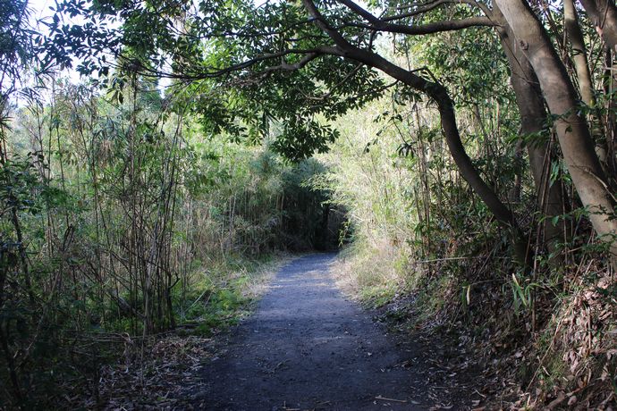 こういう史跡を訪ねる時には毎度のことですが、森に囲まれた気持ちの良い道をすすみます。そこそこ整地されてますので足場は良好です。ただ、車いすはつらいでしょうね。。