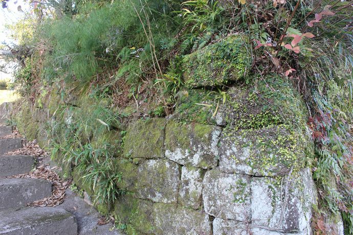 路肩に車を停め狭い道を歩いていくこと90m。古めかしい石垣のある場所にありました。