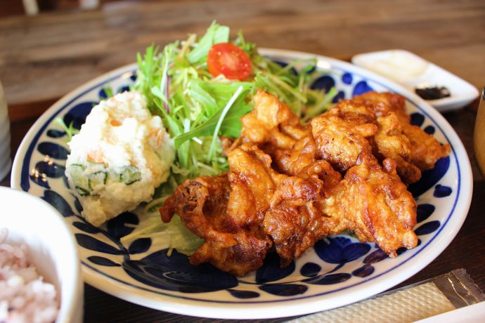 週などで変わるJyuJyu定食に目移りしつつ、超からあげが食べたい気分だったので、唐揚定食を注文!