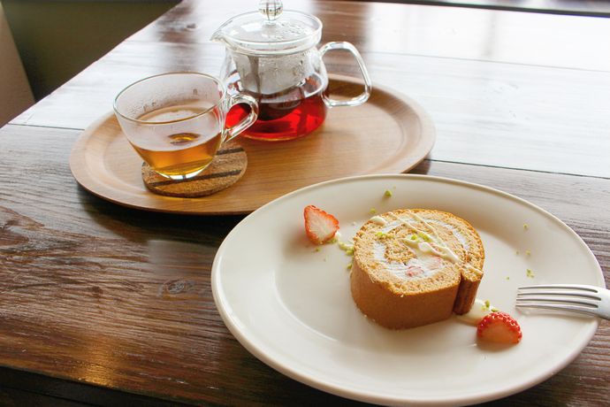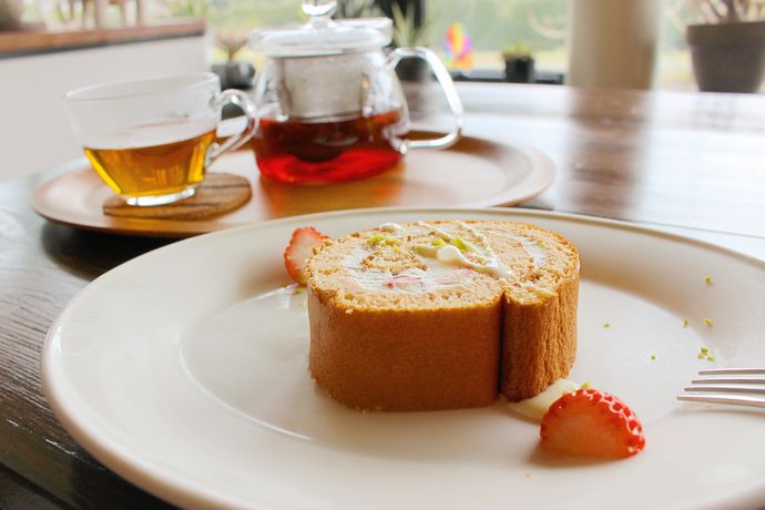 そして間髪いれずデザート!旬のイチゴをつかったロールケーキ!