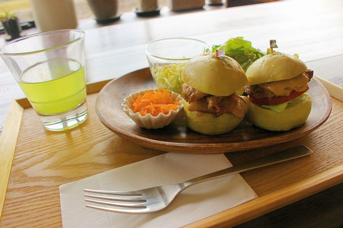 お食事メニューは3種ですが、悩みます(笑)ここはバーガー好きとして知覧バーガーを選択!