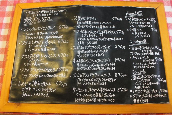 しかし、事前の情報通り、パスタのお店としてはお値段がリーズナブルだと感じました。。※H28/4現在の料金。材料費の高騰などがあった場合、値上げの可能性あり