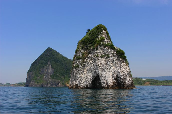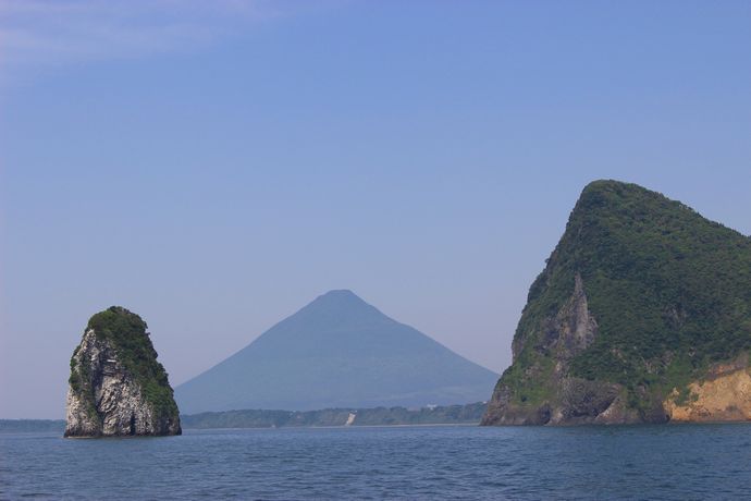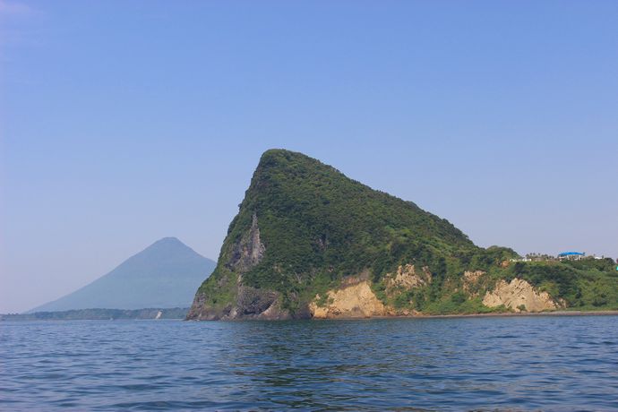 指宿市山川のたまて箱温泉や伏目海岸から沖に見える岩のような島のような場所。