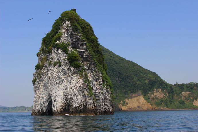 岩場の白さはすべて鳥のフンなんだとか。。