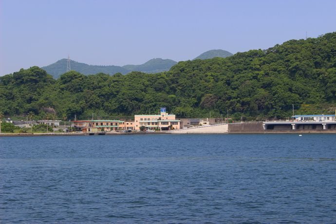海から眺めるJR山川駅付近