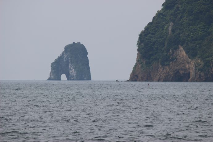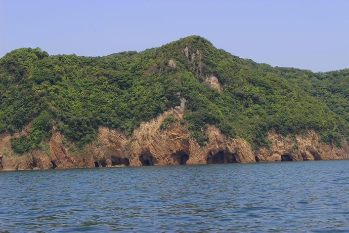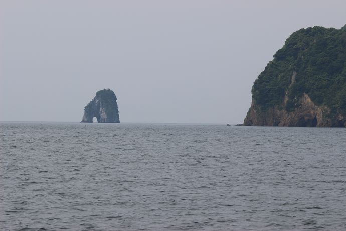 港湾から出てしばらくすると、なにやら岩陰がみえてきたような・・