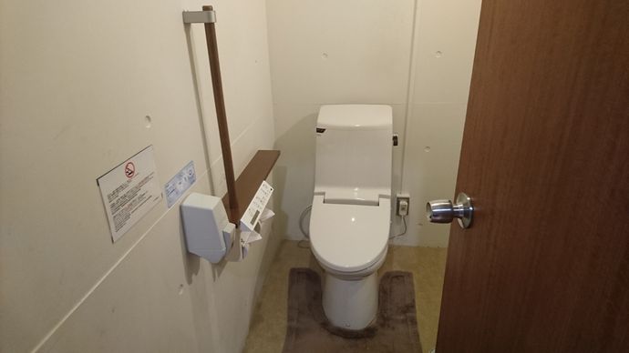 トイレは右に縦型の手すりがあります。こうみえて写真右側はスペースに余裕があります。