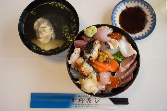 迷いつつも長島近海の海の幸を盛り込んだ海鮮丼と、長島や阿久根の特産である”うに丼”との壮絶な脳内バトルの末、海鮮丼を選択!