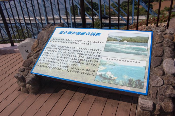 1974年(昭和49年)に阿久根と長島をつなぐために架けられた全長 502m幅 7mの黒之瀬戸大橋と、黒之瀬戸の急潮を眺めることができる展望所があります。