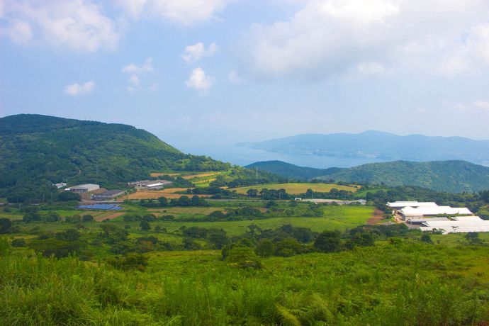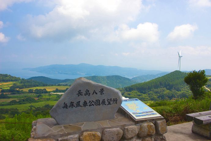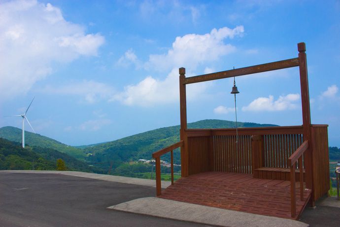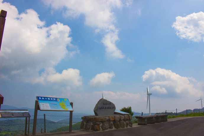 たどり着くのに一番苦労した毎床風車公園展望所。矢岳そばにある川床放牧場を目指すとわかりやすいです。他の展望所は海がよく見える場所が多いのですが、ここに関してはふもとにある放牧場を見下ろす形ののどかなパノラマが広がります。