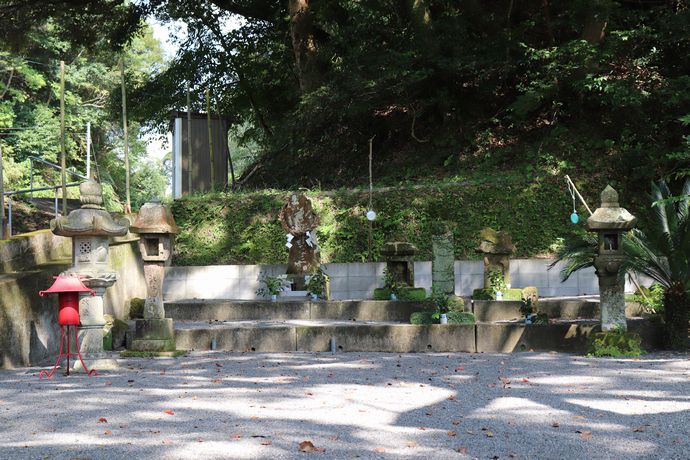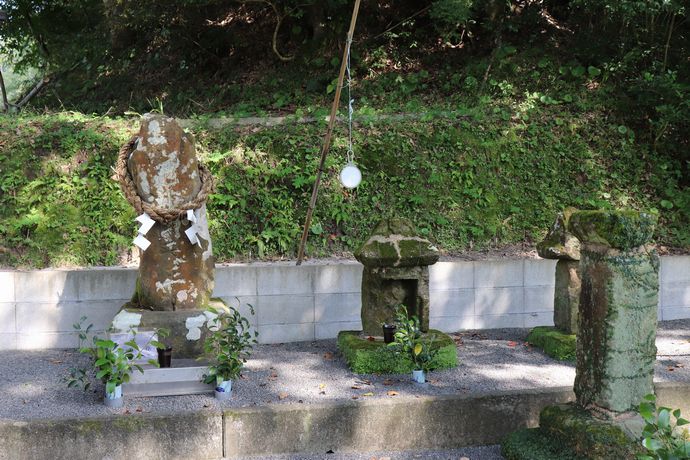立派なクスノキが毘沙門天の社がわりのようです。。ちなみにこの上の道路はかつての南薩線の線路跡のような気がします。。