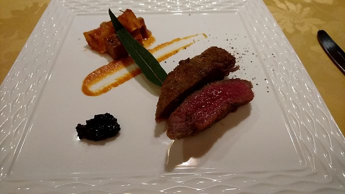 メインの鴨肉の低温ロースト!低温ローストは肉汁を外に逃がしにくい調理法ですので、肉の旨味をしっかり堪能できます!