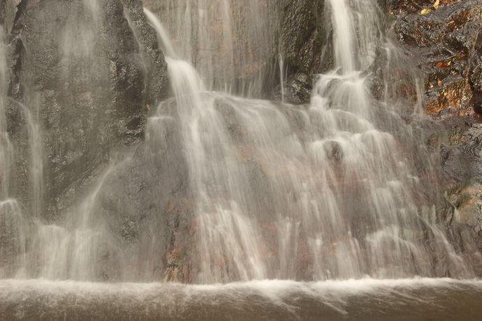 名前の通りこの滝は8つ滝があるのですが、道路からは第2の滝まで見ることができます。ちょうど鳥居のある滝の横の細い石段を登れば第8の滝まで行くことができますが、実際のところ第3から第6の滝の間には10もの小さな滝があるそうです。たいした装備もない私は断念しました。。あと、石段は悪路で手すりもない為、十分注意してください。