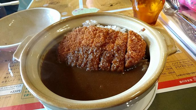スパイシーなカレーとカツを土鍋に閉じ込めた一品。食いでがあります!土鍋でカレーってなかなかオツです(笑)
