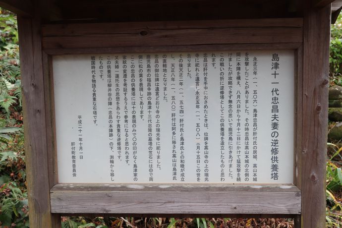 逆修供養とは、生前にあらかじめ自分の死後の冥福を祈る仏事です。島津奥州家だった氏久公と元久公は大隅守護でもあったため、この地との縁が深いです。