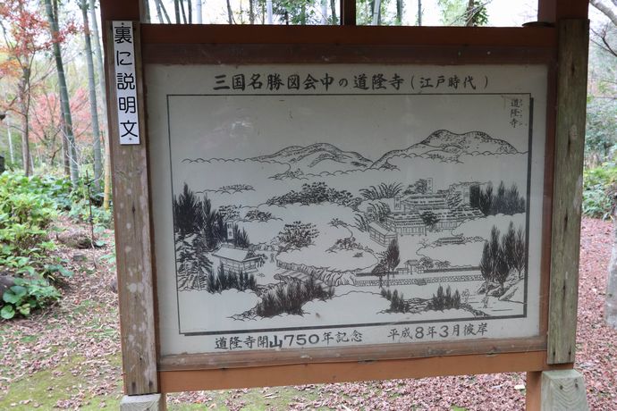 開山した蘭渓道隆についての案内。蘭渓道隆は道隆寺の建立後、鎌倉で建長寺を開山しています。建長寺は歴史といい佇まいとい、本当にすごいお寺です。。⇒画像検索結果