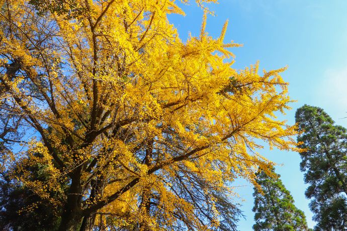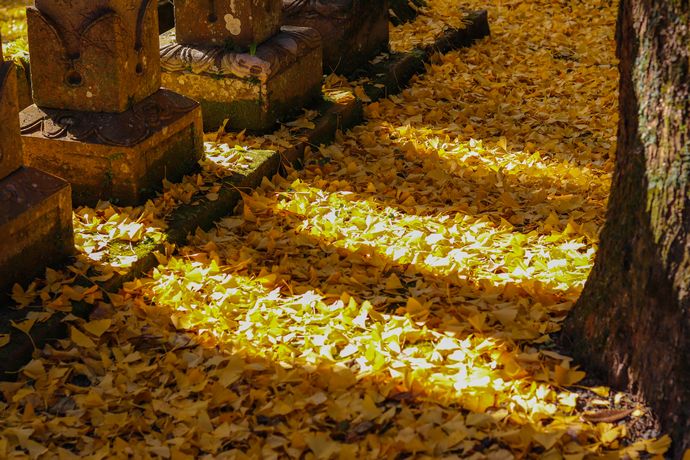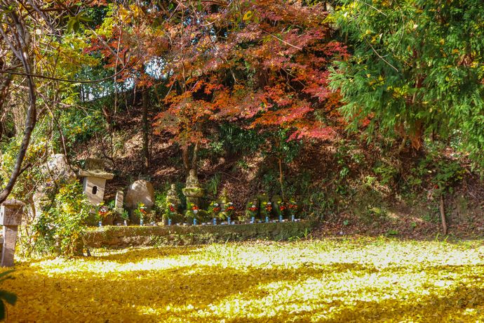 驚きました。。仏様の上には紅葉が赤々としており、御前には金色の海のごとく、イチョウの葉が!極楽というものがどういうものか想像できませんが、なにやらそんな雰囲気を感じさせる光景です。