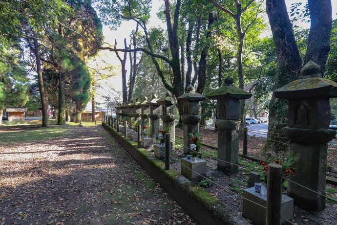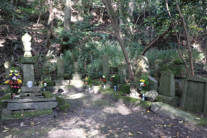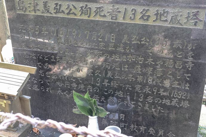 境内の西側には義弘公に準じた家臣たちの地蔵塔があります。1632年建立とのことですが、比較的状態が良いです。