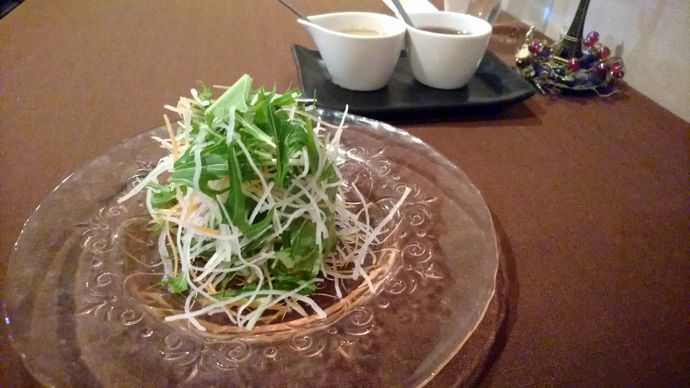 まずはサラダ!実は中に生ハムが潜んでいるという。。