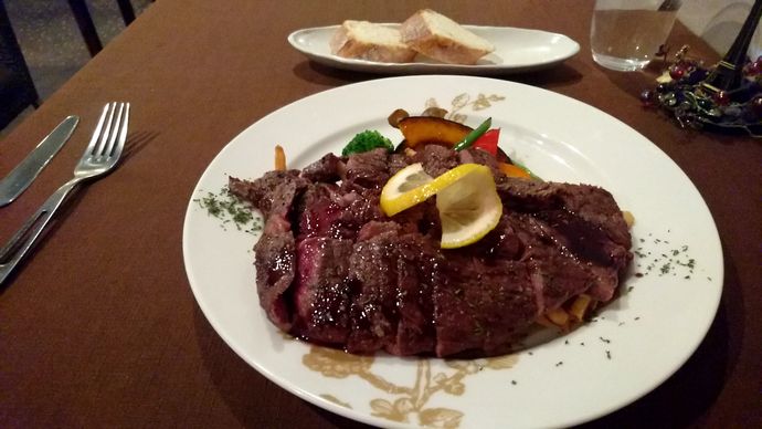 合間に自家製パン。おかわりできたのかな?ステーキに意識が向きがちですが、気が付けばステーキと共にいつの間にか皿からなくなっていました(^^♪※メインとの調和を図る素晴らしい存在です。