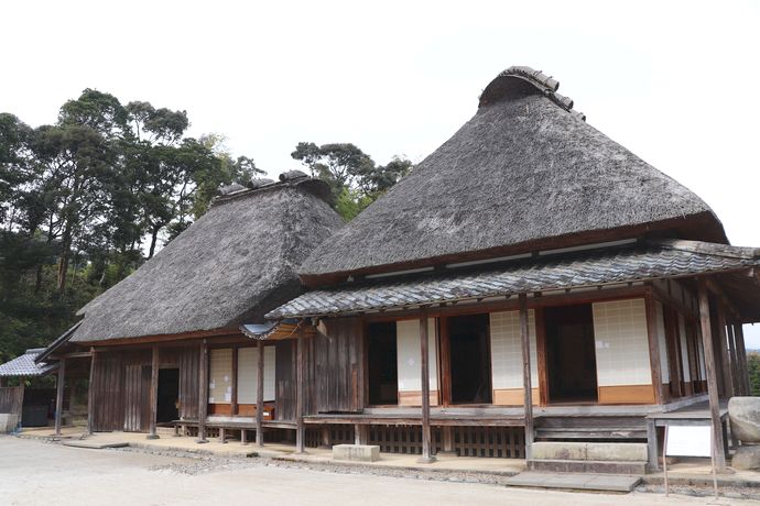 旧増田家住宅は、明治二年(1869)の廃仏毀釈で廃寺になった延命院の跡地の一部に建てられたと思われ、敷地入口には、明治六年の石敢当が据えられていることから、母屋はこの頃の建築と推定されます。敷地には、母屋のほかに、石蔵と浴室便所、洗い場が建てられています。旧増田家住宅は、薩摩地方の武家住宅である別棟型民家としての特徴を有しており、入来麓で唯一、棟を直行させていることや縁を切って玄関を設けていることなど古い形式が残されています。平成二十二年度からの三カ年かけて実施した保存修理工事では、母屋に当初は茅葺屋根であったことを示す痕跡が確認されたため、修理前の瓦葺から茅葺に復原しました。なお、今回の保存修理工事では、石蔵一階に残る大正七年四月竣工の刻銘などから、敷地内にすべての建物が揃う大正七年から大正十二年までを復原整備年代としています。