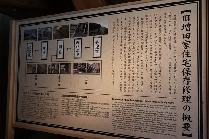 内部は旧増田家住宅の保存修理についての案内や動画が!