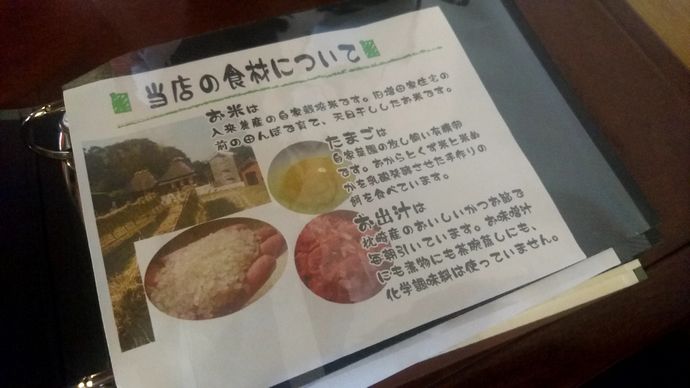 こちらでは落ち着いた雰囲気の古民家で、Iターンで関東から来られたご夫婦がされているお店。入来産の掛け干し米や、無肥料無農薬で育てた野菜、自家飼育の地鶏の有精卵を使用したお料理が楽しめます(^^)/