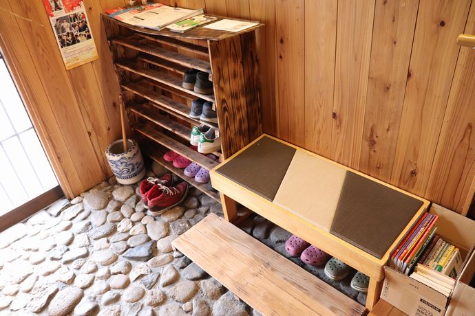入口に腰掛けスペースがあるのはいいですねぇ♪靴を履くとき楽なんですよ!