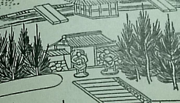 三国名勝図会に描かれた内容をもとにすると、この場所は本堂があった位置の西側にあたるようです。