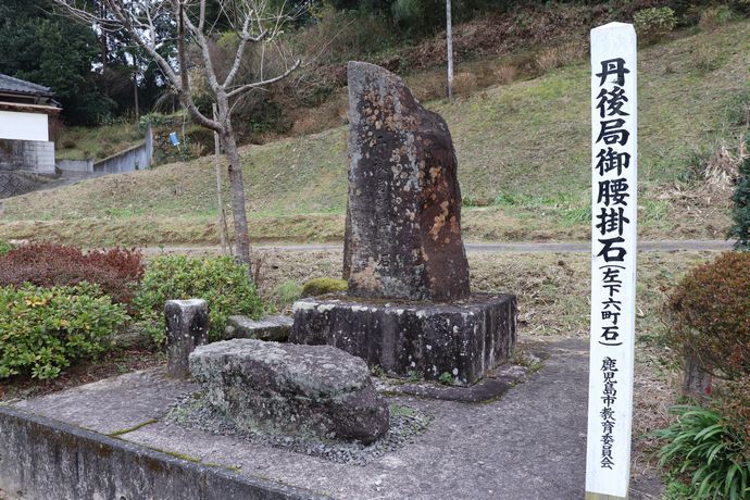 参道よりもさらに手前の道の右手に、丹後局様が腰を掛け休まれたという石が残ります。
