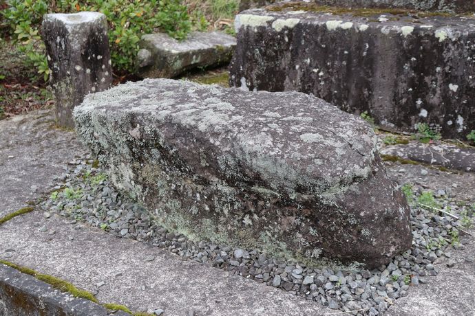 その隣にある御苔石。表面を削り取りお守りとすると安産にご利益があるといわれていたそうですが、これが元々のお墓だと言われています。