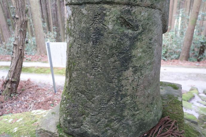 後方から。建立年などが刻まれています。ちなみに後方の全体像はいわいる陽石の形状となっています。