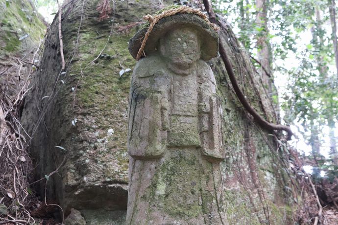 山の中、しかも畑がないところにある田の神さぁ。。なんとも不思議な感覚ですが、途中の散策路、鎮座されているお姿。とても良い雰囲気があります。