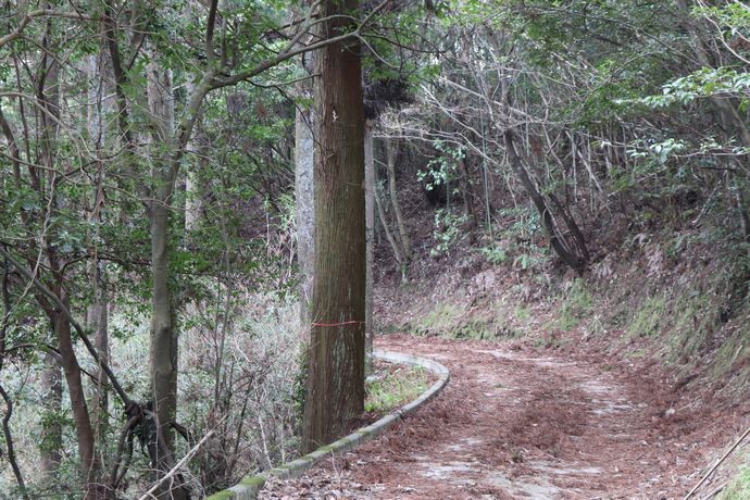 しばらく歩くと左手にそれらしい階段が。。(舗装していなければタイムスリップしたかのような山道です)