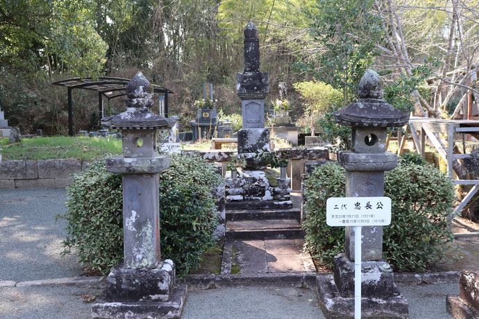 島津忠長公のお墓です。上の写真だと右手が忠長公で左手が奥方のお墓となります。