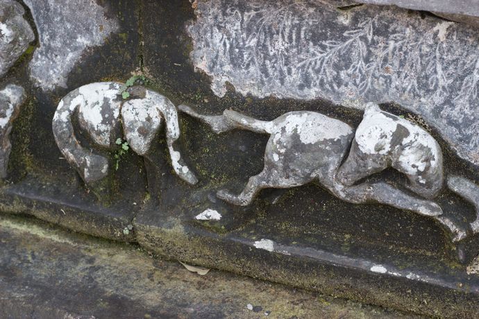 墓石の大きさにばかり目を奪われますが、お墓に刻まれた彫刻がまた見事でしたので、一部をご紹介いたします。