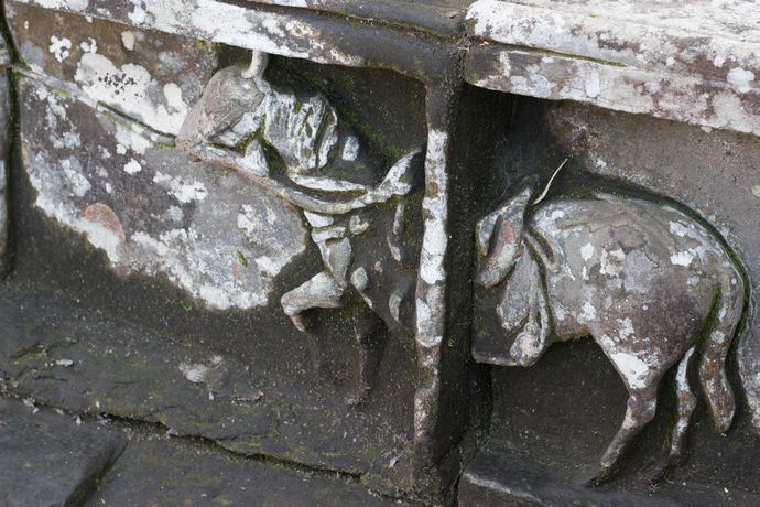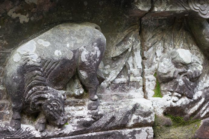 そして個人的に引き込まれた、牛と傍でかがむお坊さん?これ、建てられたばかりの時はどれだけ美しかったんでしょうか・・ため息が出ます。。