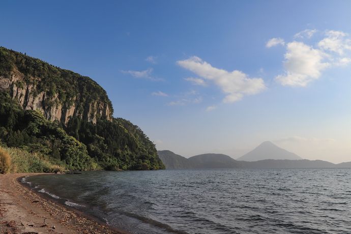 この先に池田湖に降りる階段と道がつくられていてちょっと降りてみました。多分、この風景は昔からかわらない風景ですね。人工物がありません。