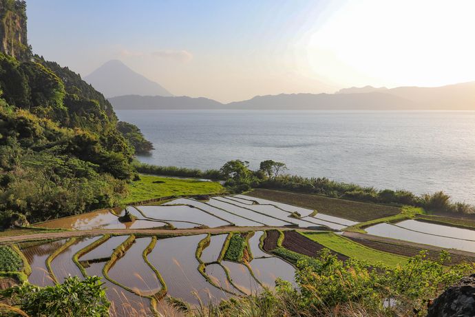 池田湖に面する清見岳にかつてお城があり、その城主の統治下で耕地された棚田です。