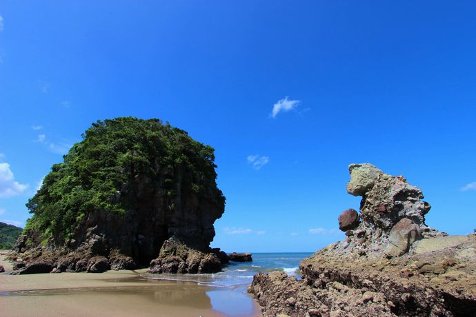 いちき串木野市側からなら国道三号線沿いの西方海水浴場の海岸の手前左手に現れます。