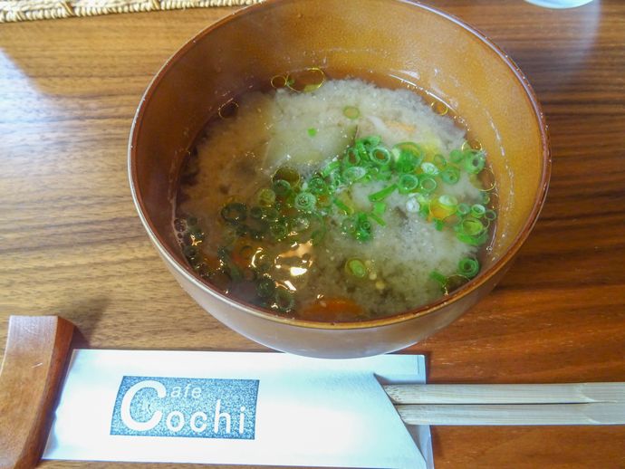 写真ではわかりづらいですが、結構、お椀のサイズが大きいです。そして豚汁に近かったかな。とっても美味しいお味噌汁です!