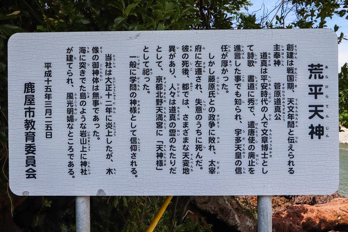 創建は天文年間(1532年~1554年)天神神社と呼ばれる通り、菅原道真公を祀っている神社で、通称「荒平天神」と呼ばれています。
