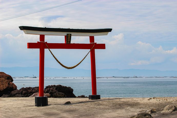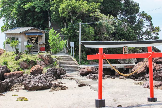 潮が満ちていれば鳥居付近まで波が来ます。この日は引き潮でした(^^)/